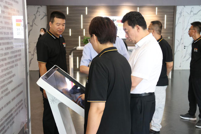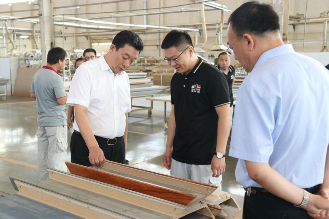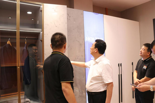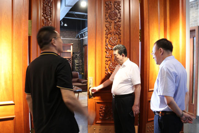 在生产车间、原材料库房和产品展厅现场,霍尔茨公司赵崇联总经理详细介绍了霍尔茨木门的生产情况以及产品特点。对于霍尔茨以消费者健康安全为导向的产品理念,主要原材料选用高等级材料的环保做法,干净整洁的生产环境,井然有序的现场管控,以及流畅稳定与最优布局的人性化管理,王树平董事长表示高度认可。