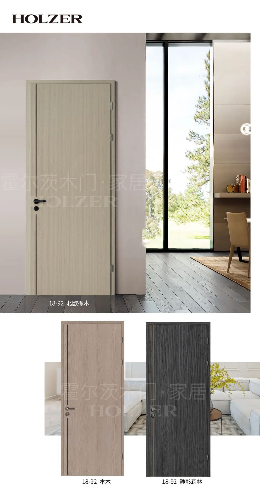 新品18-92延续霍尔茨一贯简约的审美定位,删繁就简,传递了当代年轻人强调个性、追求与众不同的消费态度,纯色木门色彩素雅沉静,原木色纹理层次清晰。同时材质细腻而经久耐用,木作技艺质朴扎实,承接用户期待放松、渴望拥抱大自然的情绪,真正与木为邻,带来充满仪式感又不失轻松愉悦的生活体验。