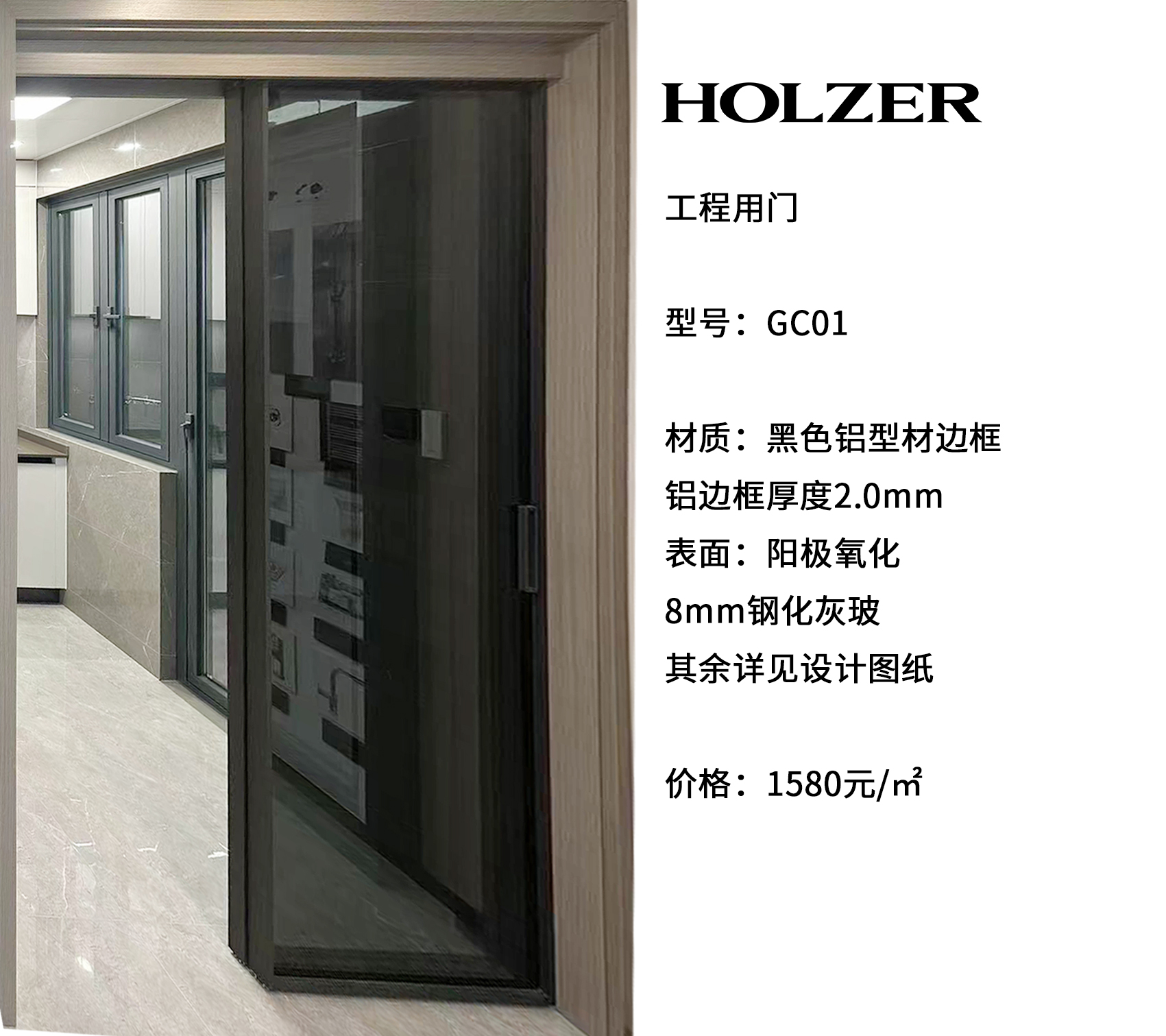 霍尔茨极简系列铝框门GC01