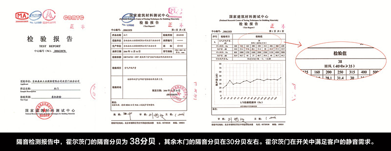 霍尔茨T型门,引进德国进口的T型技术,配合先进的杜拉特材料及其他静音五金设备,能够将隔音效果达到38db。也就是说,能有效地隔去空气中38db的噪音,如:现在我们的客厅噪音为70分贝,在安装使用T型静音门的房间,隔音分贝为38,即可阻隔掉38分贝的噪音(70-38=32分贝,——沙漠的夜晚,这是一种宁静的享受)。这就可以达到净化居室声音环境,隔舍掉38分贝之后,室内更易于居室享受, T去不必要的浮华,静享居室生活之美,大大的促进了居室换进静音效果。