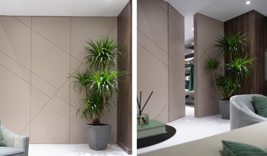 除了适用多个功能区的属性,隐形门还在色彩、风格的搭配上有着极强的适配性能,能够与其他家具产品达到高度统一,并将空间在视觉感官上予以延展,呈现出比实际面积更大的效果。