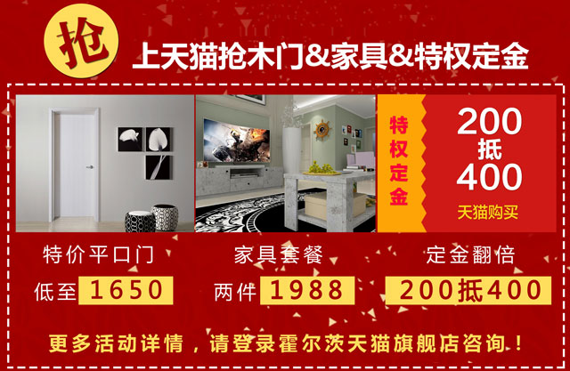 是不是觉得只有门还不够?家具再了解一下电视柜、茶几两件家具最低只需1988元就可以带回家!